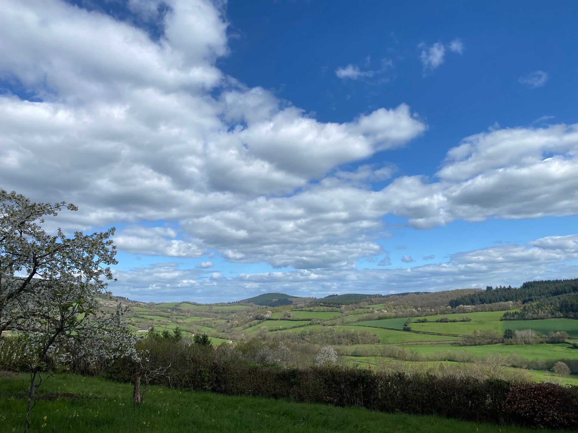 Le jardin de 8000 m2, en partie gazonné avec de nombreux arbres fruitiers et en partie boisé, offre une belle vue sur les collines et sur le Mont Beuvray. La route ne mène pas à d'autres maisons, donc à part un randonneur ou un fermier, personne ne passe et vous marchez directement dans le foret.